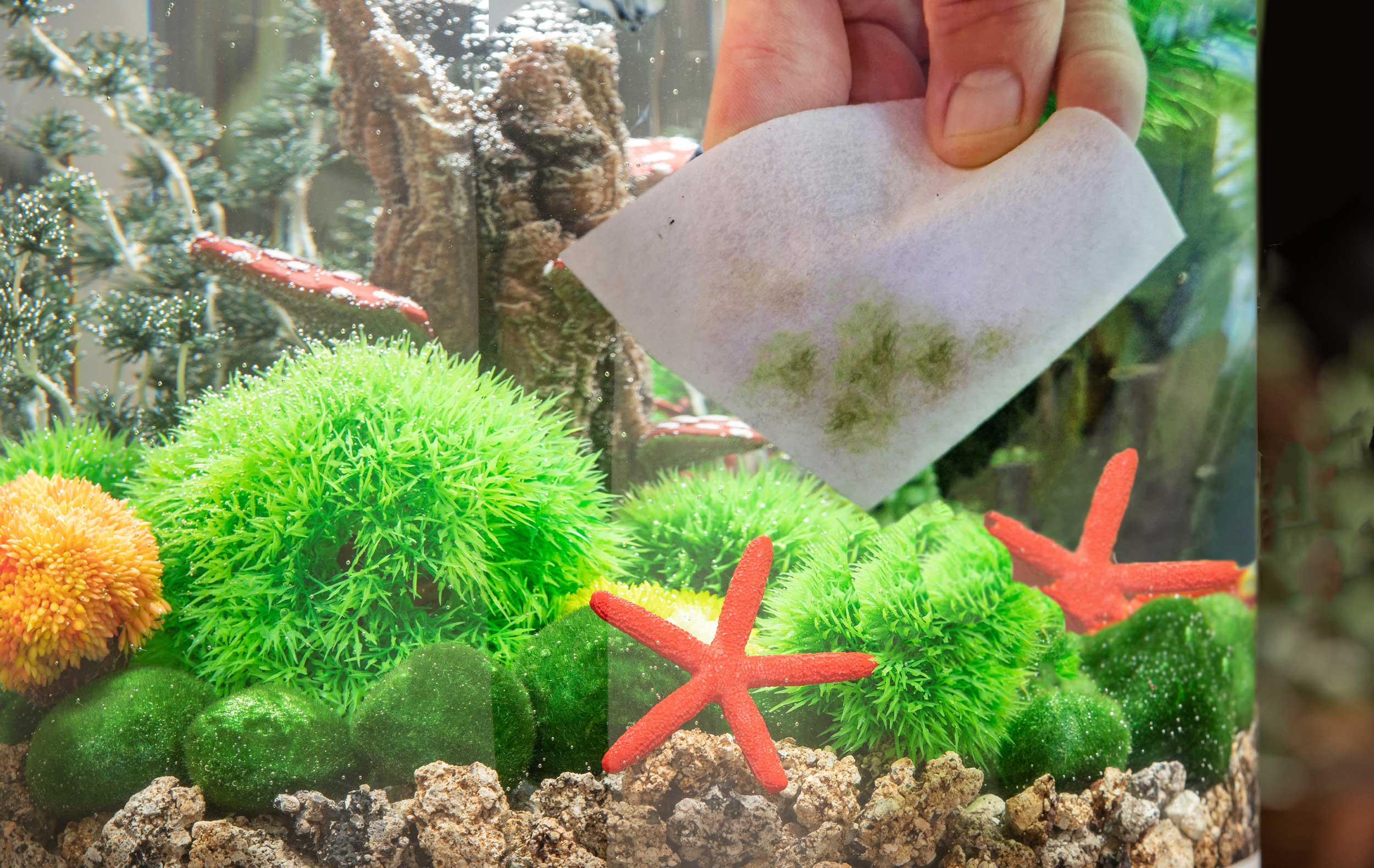 - Cleaning pads that remove algae spots and buildup without scratching or clouding the surface of your acrylic aquarium.