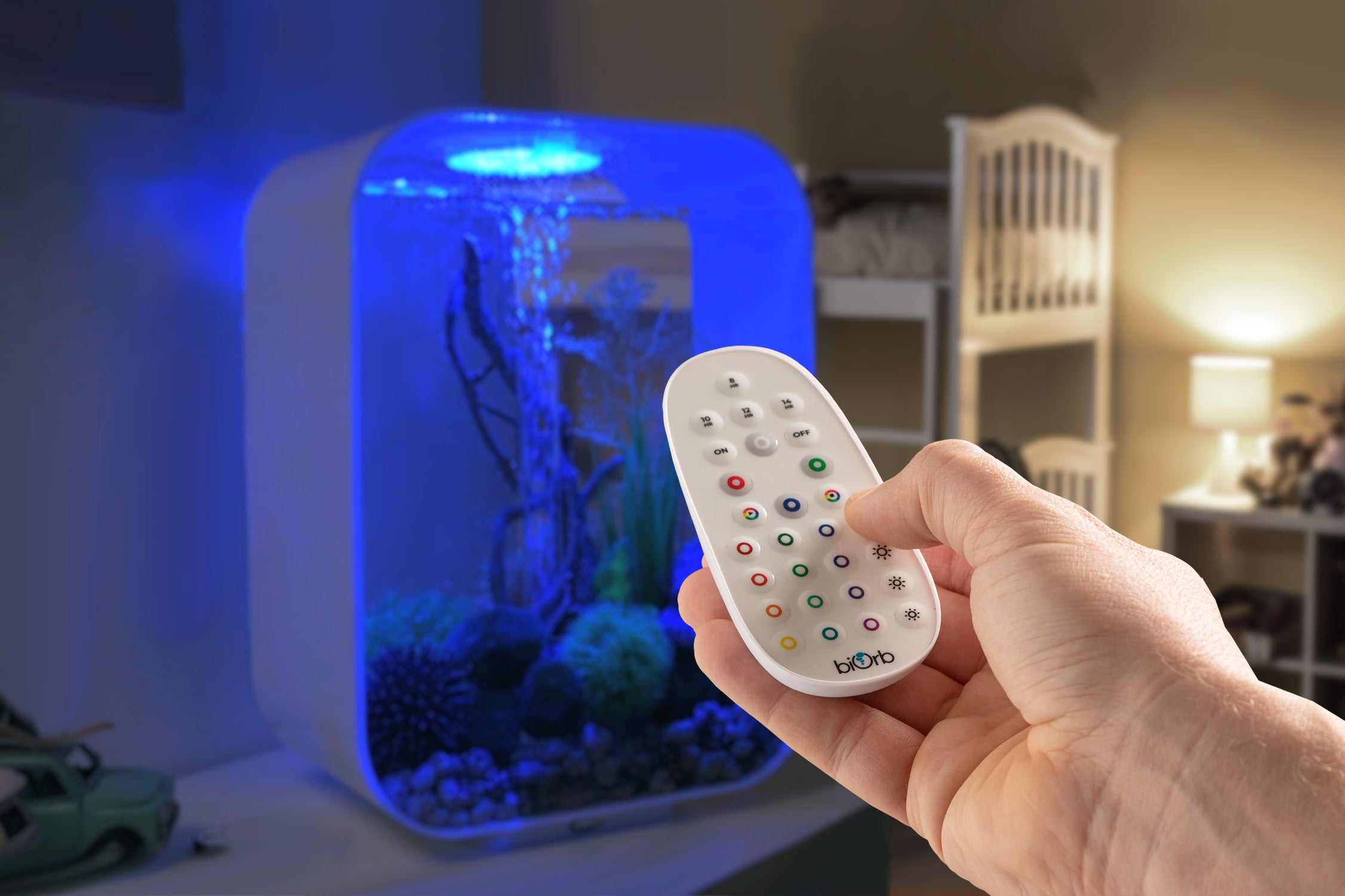 Every biOrb includes low voltage LED lighting. Choose from standard white LEDs or upgrade to MCR (Multi-Color Remote) models that let you shift between 16 colors and simulate natural day-to-night lighting cycles.